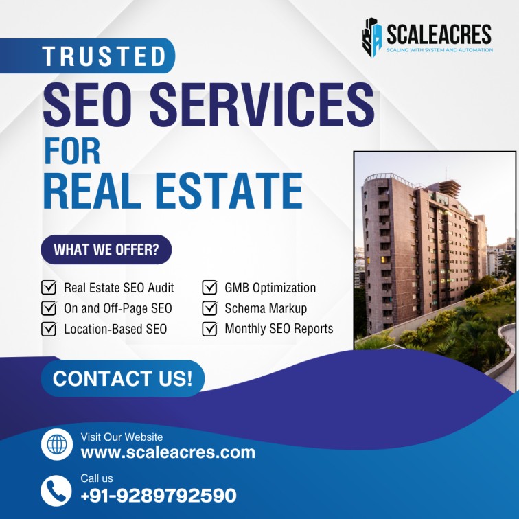 Scaleacres Promotech offers comprehensive real estate SEO services tailored for the real estate industry. Their trusted services include Real Estate SEO Audit, On and Off-Page SEO, Location-Based SEO, GMB Optimization, Schema Markup, and Monthly SEO Reports. Enhance your real estate business's online visibility and reach potential buyers effectively.