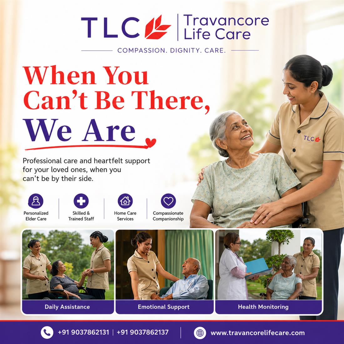 Travancore Life Care (TLC) is a registered trust in Kottayam, Kerala, offering premium assisted living for men and women aged 60 and above. Recognized as the best luxury senior care in Kottayam, TLC provides short- and long-term residential care built on comfort, dignity, and safety.