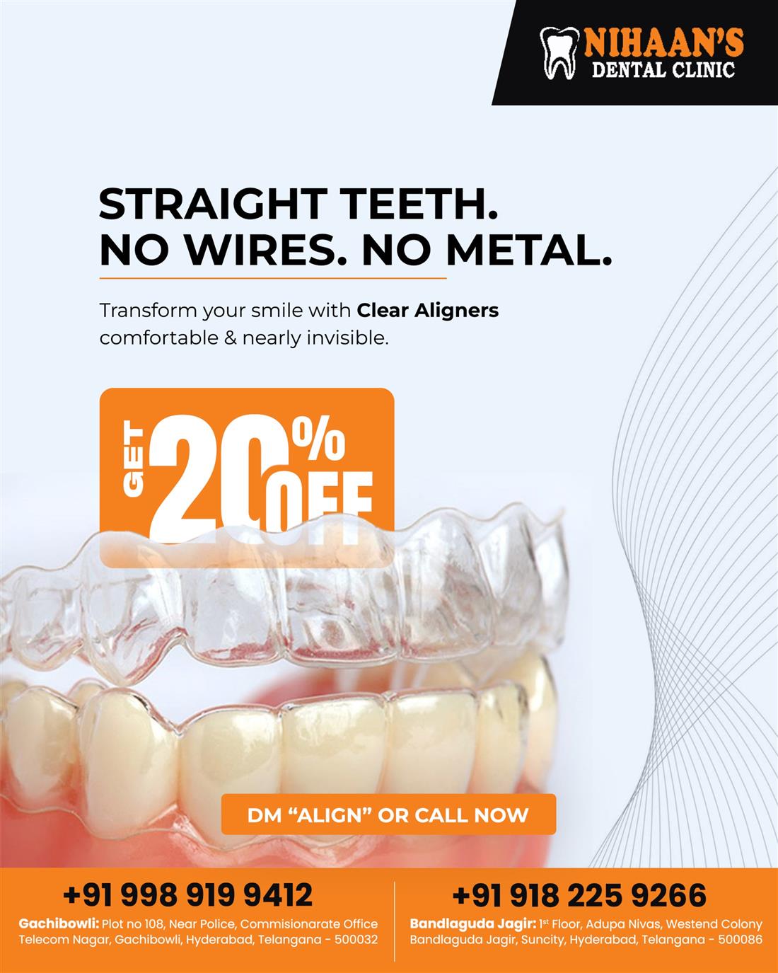 Looking for the best dental clinic in Gachibowli? Nihaans Dental Clinic offers advanced, painless, and affordable dental treatments for all age groups. From routine check-ups and cleanings to root canals, implants, and cosmetic dentistry, our expert team ensures personalized care with modern technology. Experience comfortable and hygienic dental care you can trust. Call +91 9989199412 to book your appointment today.